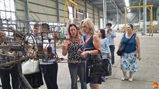 訪問團一行在集團公司執(zhí)行總裁陶建軍的陪同下走進東方彩燈出口基地,參觀集團公司美國、秘魯燈展制作現(xiàn)場,了解仿真恐龍和彩燈制作流程及工藝。訪問團與公司有關人員就城市亮化工程、冬季節(jié)日燈展旅游等展開了積極地交流和討論。訪問團成員對東方彩燈給予了高度評價,并希望燈貿(mào)集團與瀑布市的合作突破市場層面,實現(xiàn)多元、多維合作。集團公司董事長劉婭表示燈貿(mào)集團將充分借助“2018中加旅游年”的政策機會窗口,搭上兩國文化交流的快車道,向加拿大民眾展示東方彩燈的艷麗繽紛、美輪美奐。