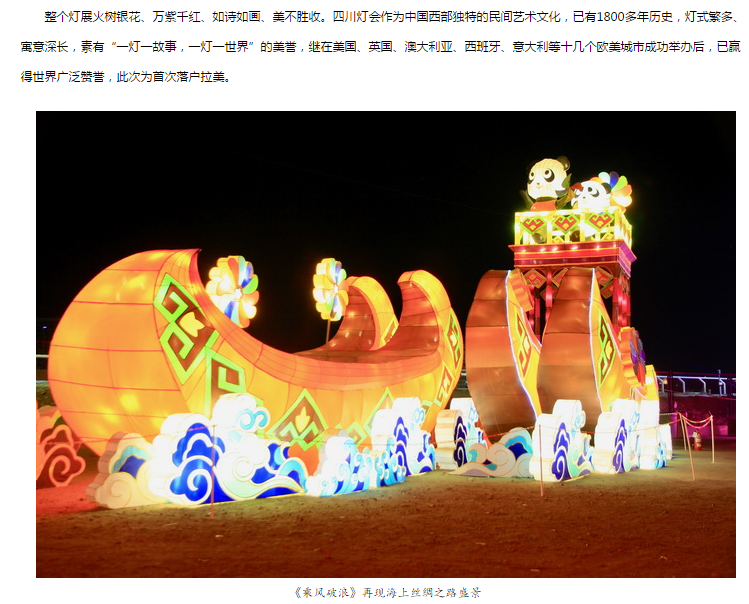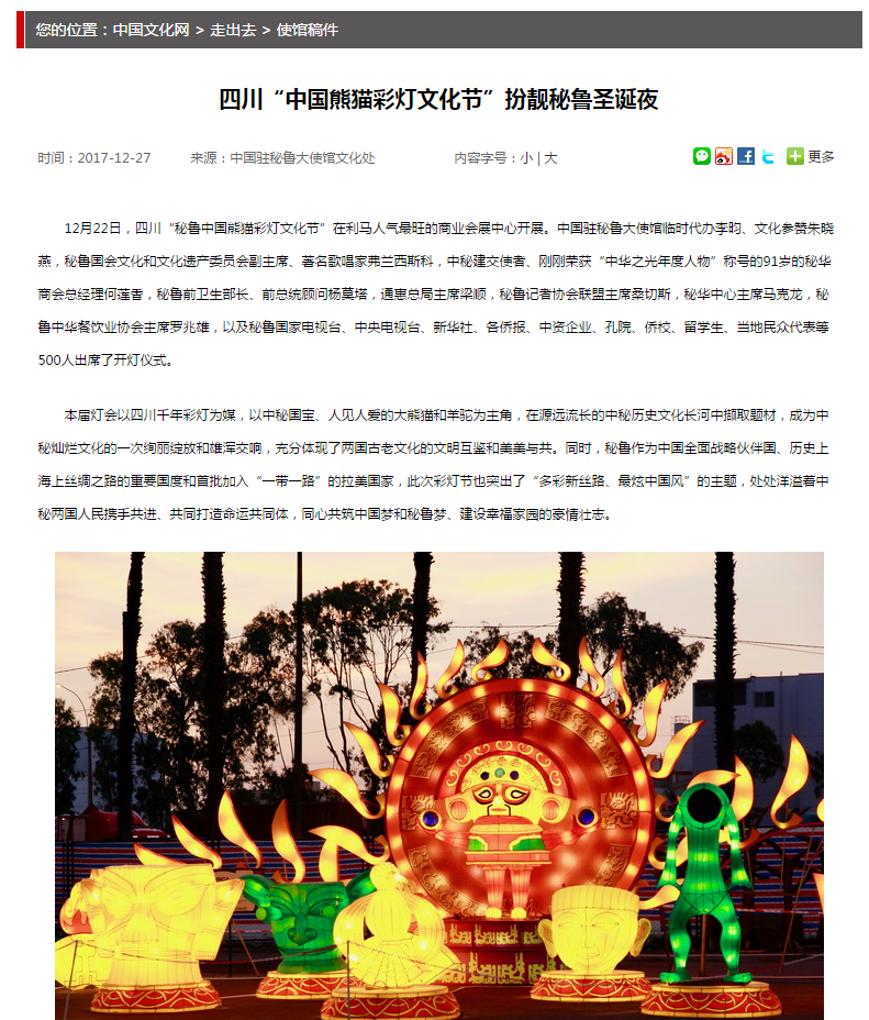 國家文化部官網(wǎng)專題報道:東方彩燈∣四川“中國熊貓彩燈文化節(jié)”扮靚秘魯圣誕夜