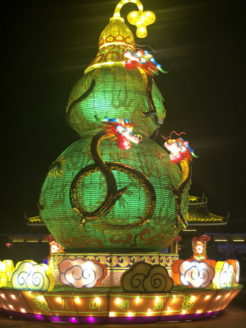龍,中華民族的傳統(tǒng)象征,《二龍戲珠門》場景恢弘大氣。“五湖四海任遨游,岳山矗立花如海。龍脈潛在南渡江,騰龍啟程更輝煌”。