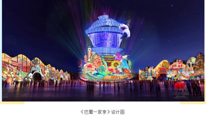 自貢燈貿(mào)集團(tuán)承制的二十七屆自貢國際恐龍燈會(huì)大體量、集群式燈組《巴蜀一家親》創(chuàng)新構(gòu)建沉浸式場(chǎng)景,構(gòu)思獨(dú)特,氣勢(shì)壯觀,充分彰顯“中國燈城”的無限魅力,讓古老的彩燈藝術(shù)在本屆燈會(huì)煥發(fā)出青春的光華,開啟盛世中華的新春慶典。