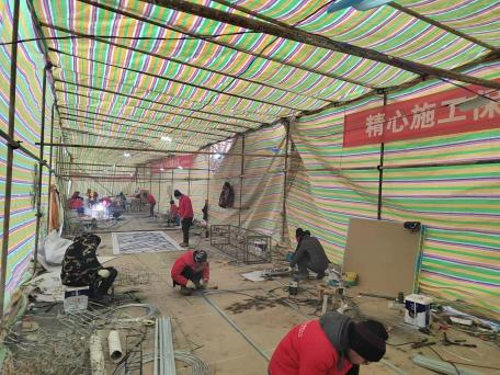 如火如荼的彩燈制作現(xiàn)場(chǎng),放樣、焊接、裱糊......正緊張有序的進(jìn)行中。